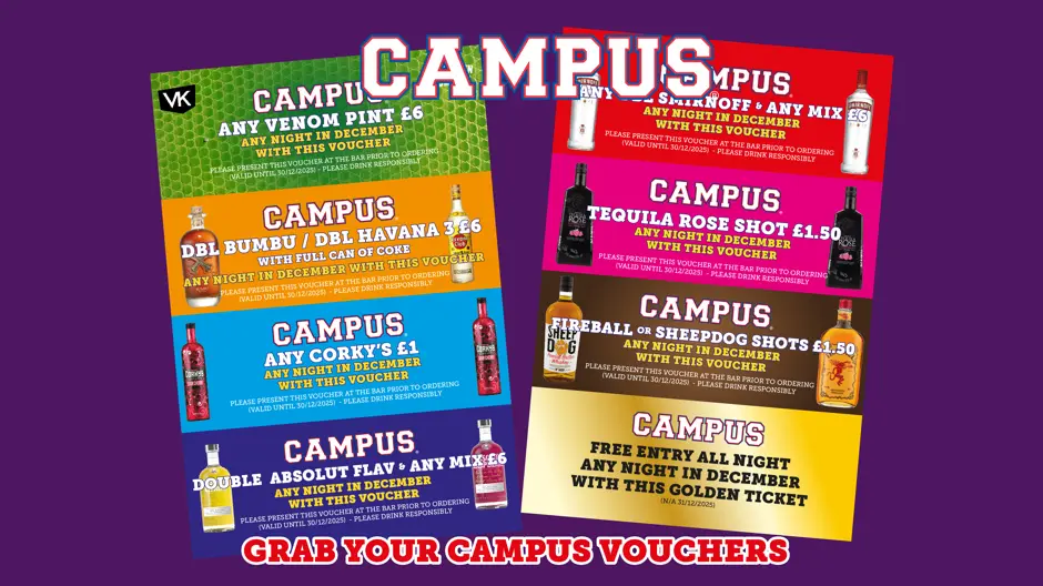 xWelcome to Campus – a slice of American college life, right here, in the centre of town. We're open 7 days a week from 12pm entertainment every night, quizzes, games and special events. Campus shows all the big football matches live on our big screens and our booths can be booked for you and your friends. To make a booking call us on 0141 332 3994.