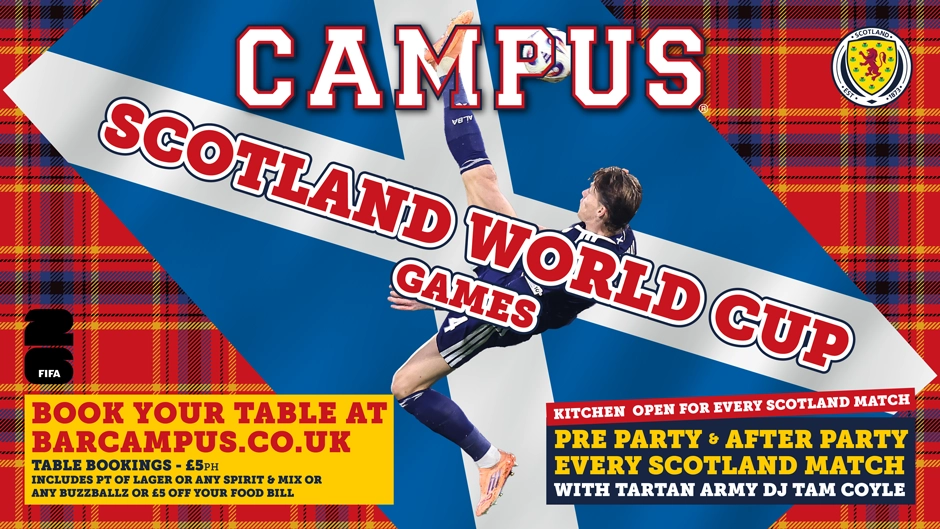 Welcome to Campus – a slice of American college life, right here, in the centre of town. We're open 7 days a week from 12pm entertainment every night, quizzes, games and special events. Campus shows all the big football matches live on our big screens and our booths can be booked for you and your friends. To make a booking call us on 0141 332 3994.